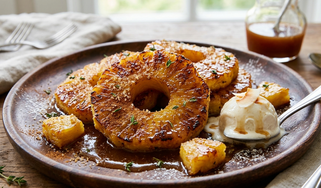 If you’re looking for a dessert that feels like a tropical vacation on a plate, this Rum-Soaked Fried Pineapple is exactly what you need. It combines the natural sweetness of pineapple with buttery caramelization and a rich rum-infused glaze, creating a dessert that’s both simple and luxurious.