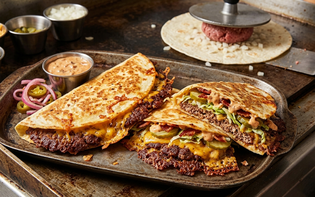 If you love juicy smash burgers and cheesy quesadillas, this recipe brings the best of both worlds together into one irresistible dish: Smashburger Quesadillas. This viral fusion recipe combines the crispy, caramelized edges of a smash burger with the golden, melty goodness of a grilled quesadilla—creating a meal that is both comforting and incredibly satisfying.
